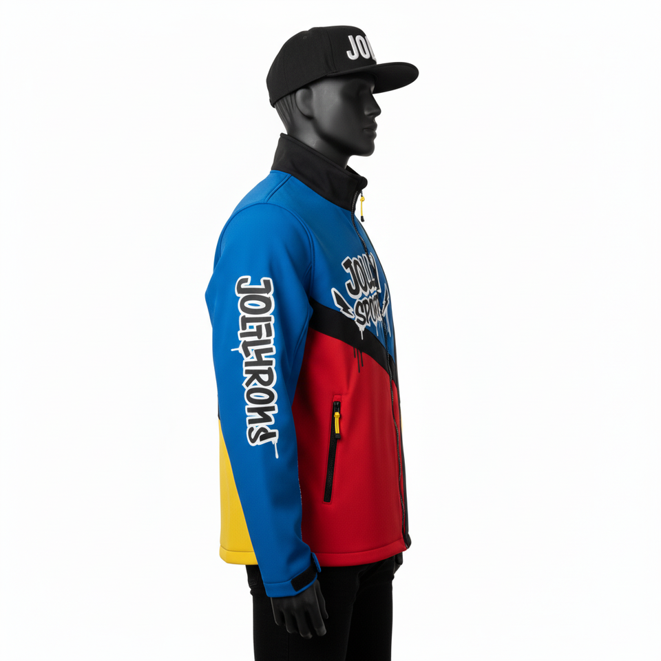 Veste softshell pour homme de qualité supérieure en GSM avec panneaux multicolores, logo personnalisé par transfert thermique, vêtement d'extérieur durable, veste softshell pour homme