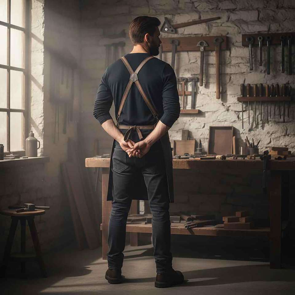 Tablier en cuir véritable de qualité supérieure pour la cuisine, le barbecue et le travail en cuisine, avec logo personnalisé, bretelles réglables, fournisseur en gros LPN-0312