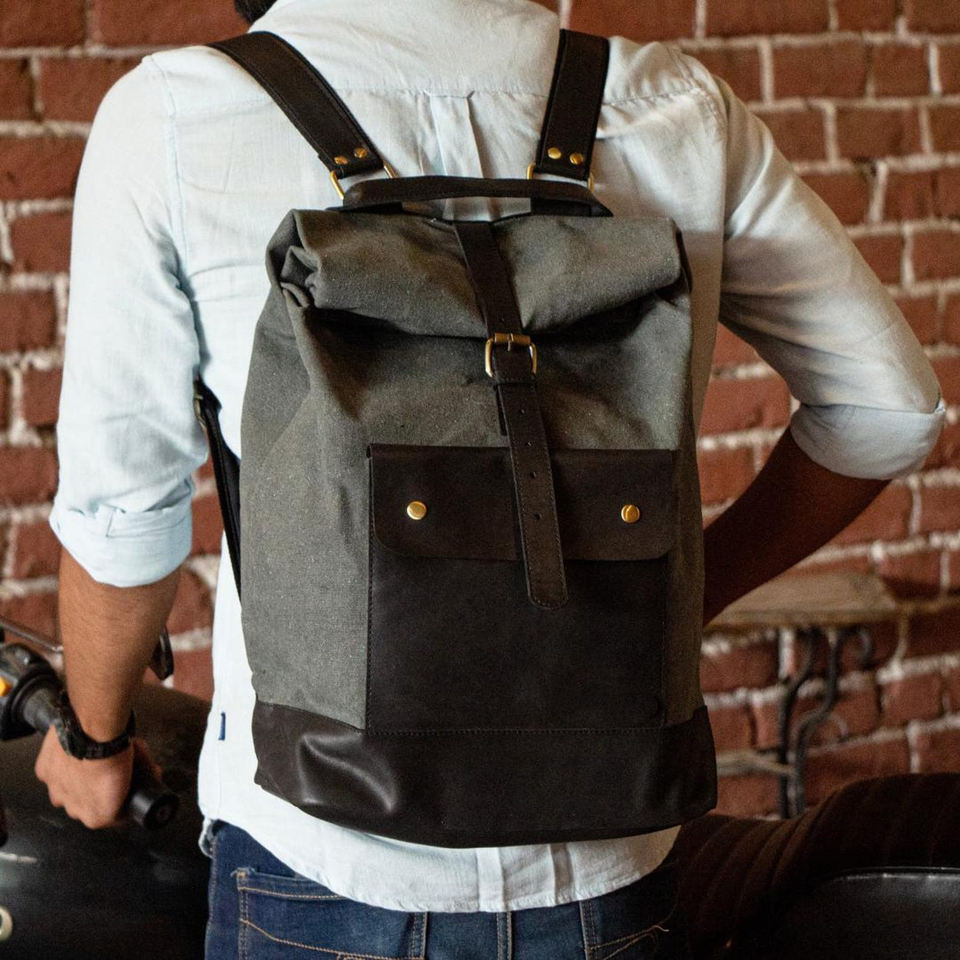 Sac à dos de luxe en cuir véritable et toile, pour les voyages en plein air, l'école, le travail, la randonnée, unisexe, durable, respirant, multi-poches