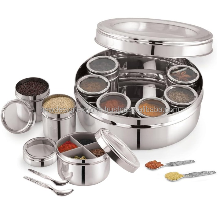 Ensemble de récipients à épices avec couvercle en verre de qualité supérieure – Système de rangement de cuisine en acier inoxydable 11 pièces