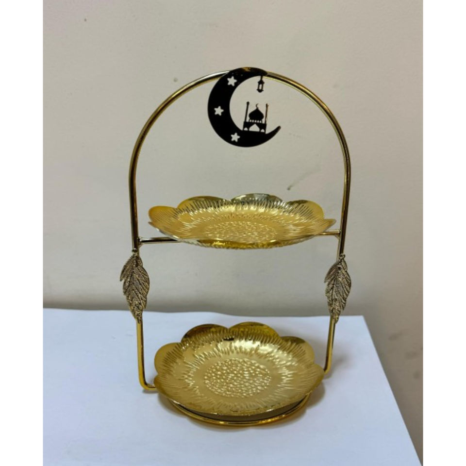 Support à gâteau à 2 étages en or de qualité supérieure avec des accents floraux blancs Plateau de présentation de desserts pour les mariages, les fêtes et la décoration de la maison