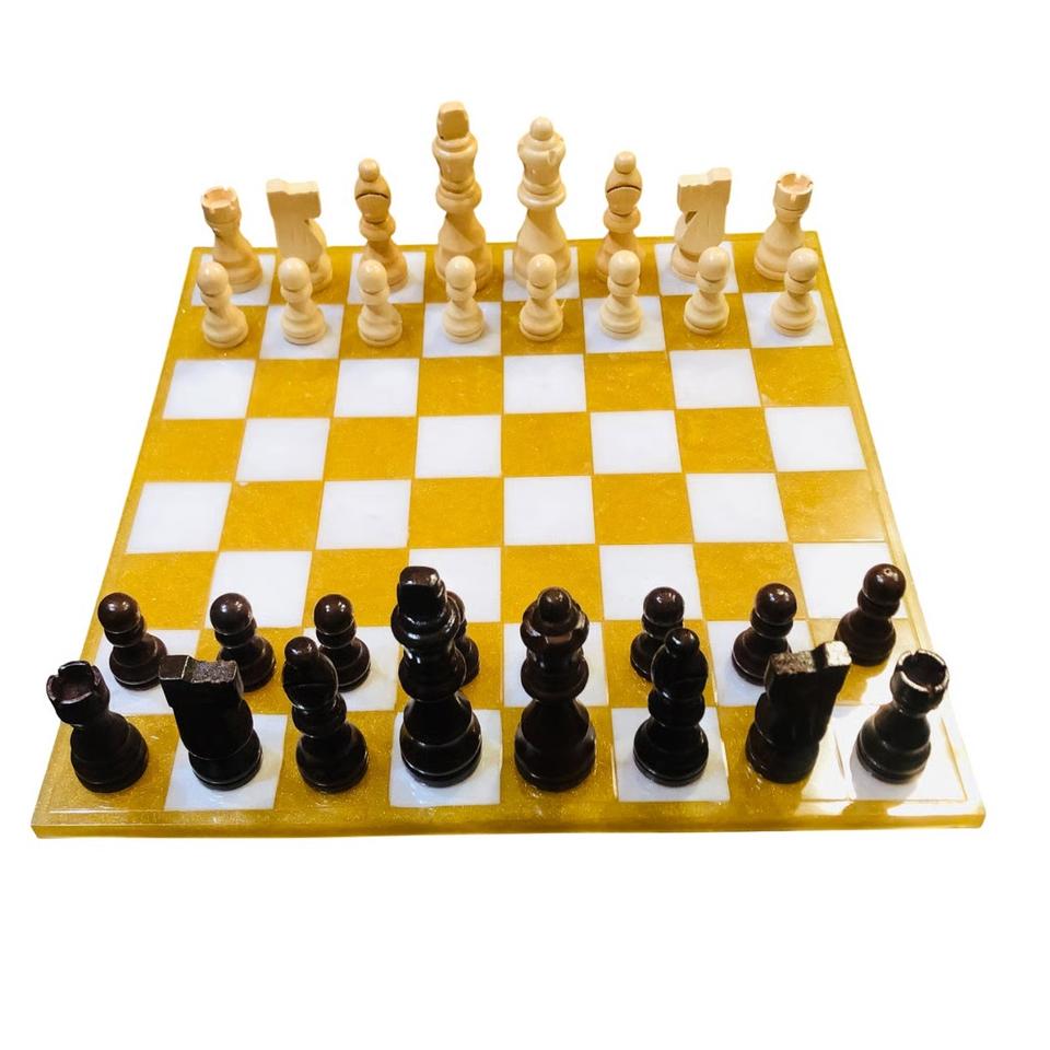 Jeu d'échecs en acrylique doré de qualité supérieure | Grand échiquier décoratif de 12 pouces, pièces et plateau en résine de haute qualité, jeu d'échecs en acrylique en gros
