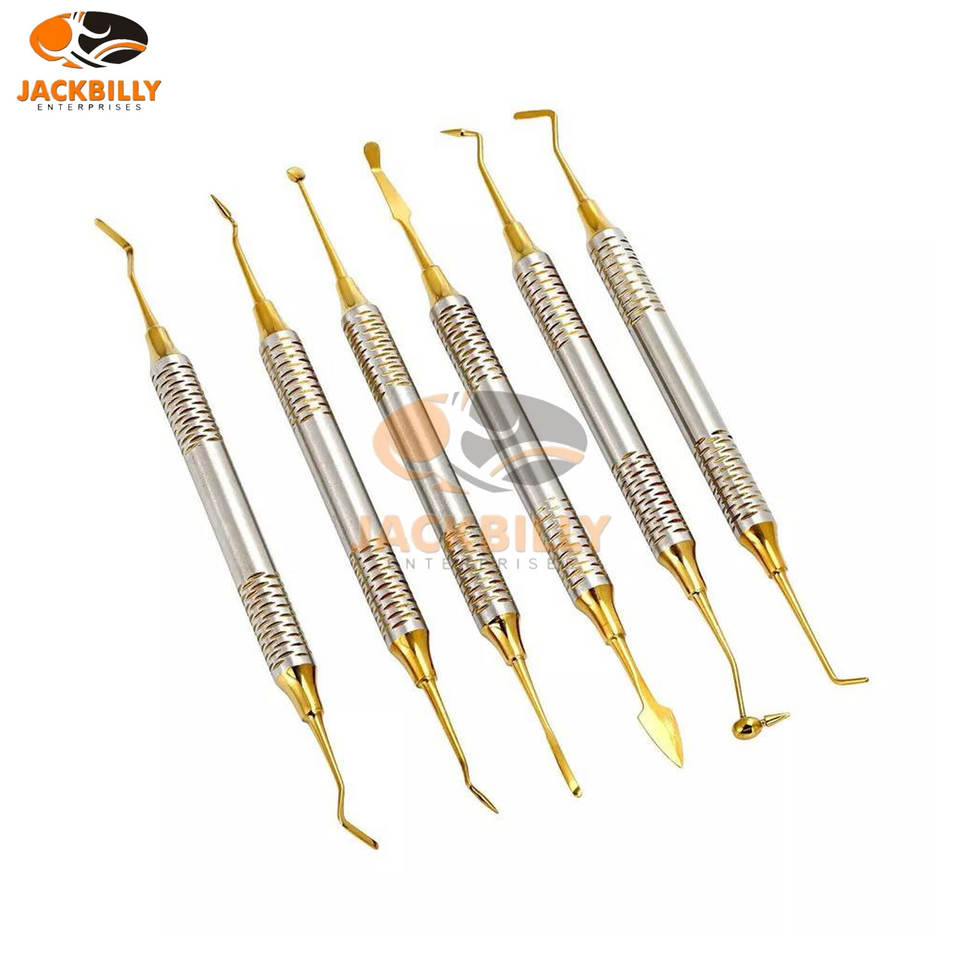 Instruments composites manuels à revêtement d'or de qualité supérieure Ensemble dentaire réparateur 6 pièces Poignée ergonomique antiadhésive Restauration dentaire