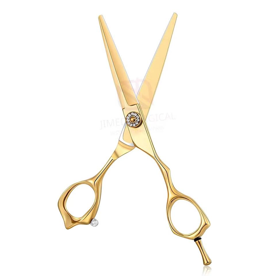 Ciseaux de barbier en acier inoxydable plaqué or de qualité supérieure, pour droitiers, avec repose-doigts réglable à vis, lame émoussée-tranchante, haute qualité