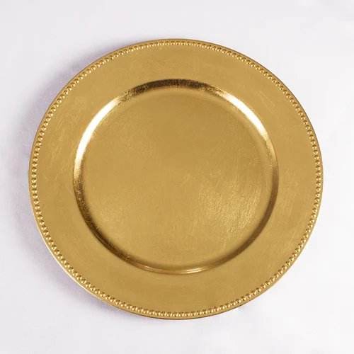 Assiette de service ronde en métal avec bordure perlée finition or premium pour les fêtes, les dîners, les serveurs, les assiettes à dîner pour la décoration de table