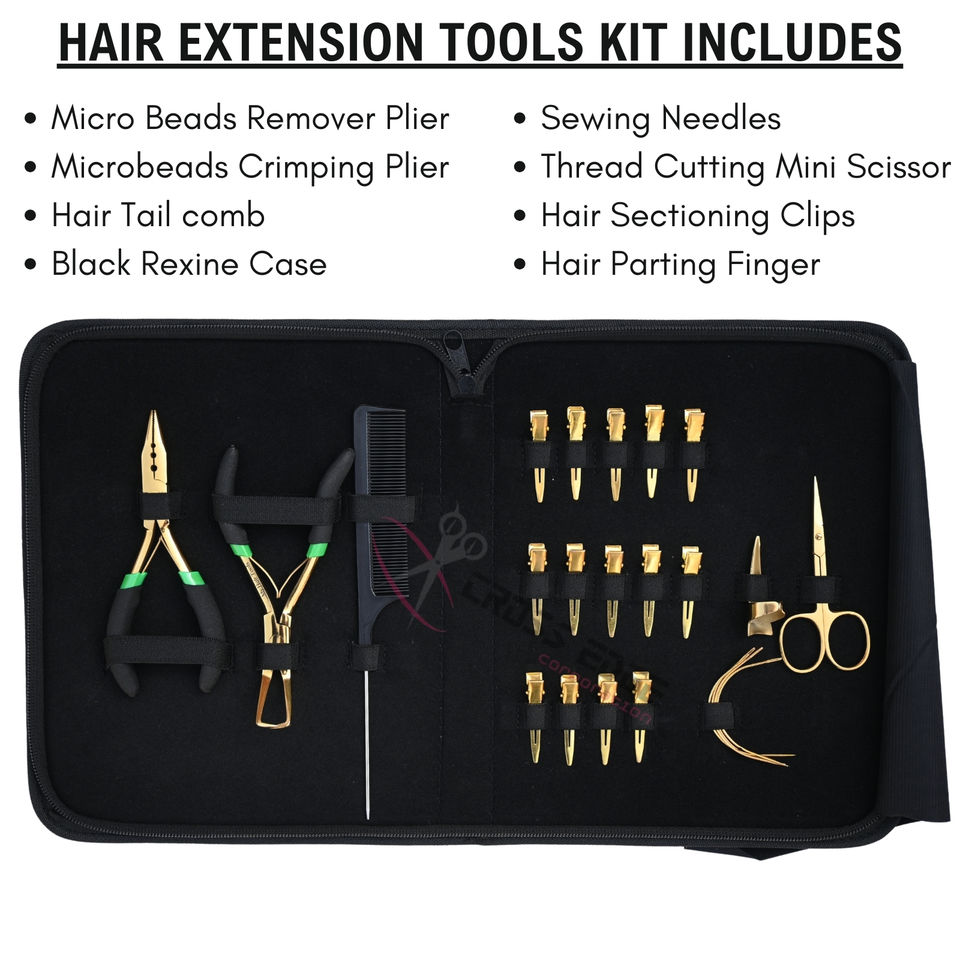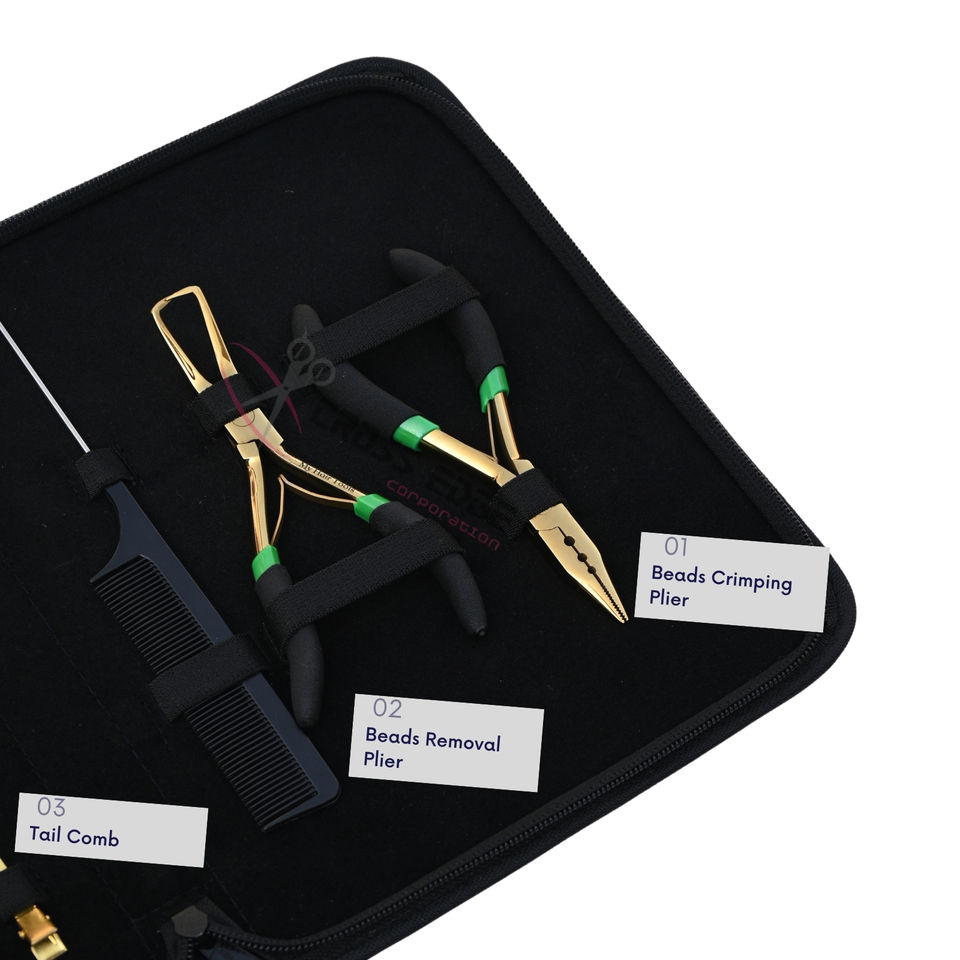 Kit de Coiffure Professionnel Premium pour Extensions Capillaires avec Pince de Serrage pour Perles Microlink, Peigne à Queue de Rat, Kit de Doigts de Coiffure et Étui de Rangement