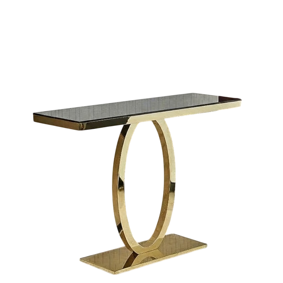Table console ovale en métal doré de qualité supérieure avec plateau en marbre blanc et pieds cannelés pour salon ou entrée