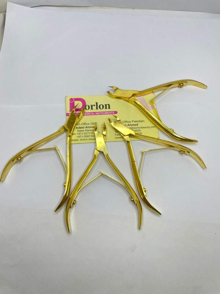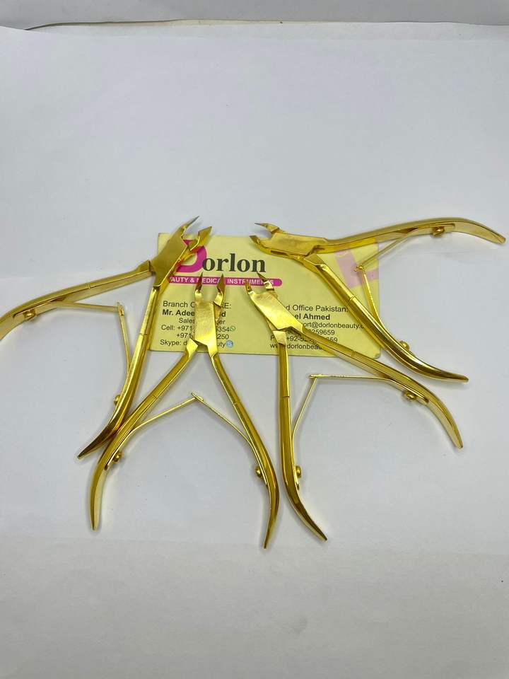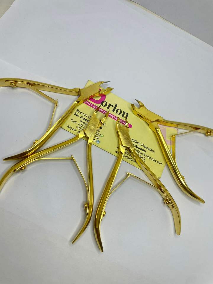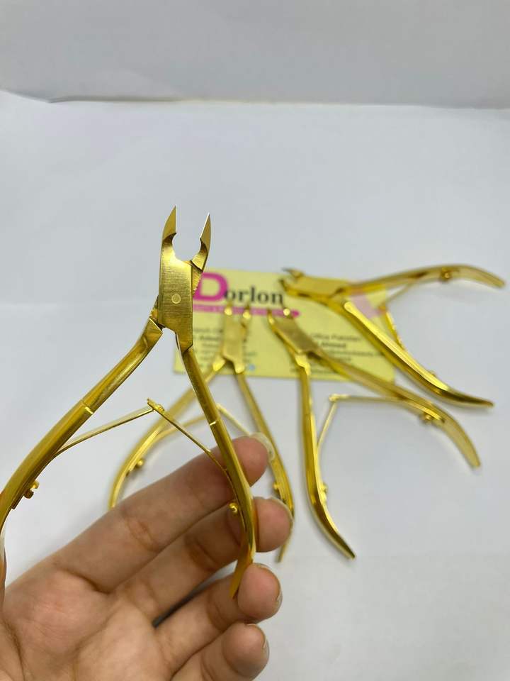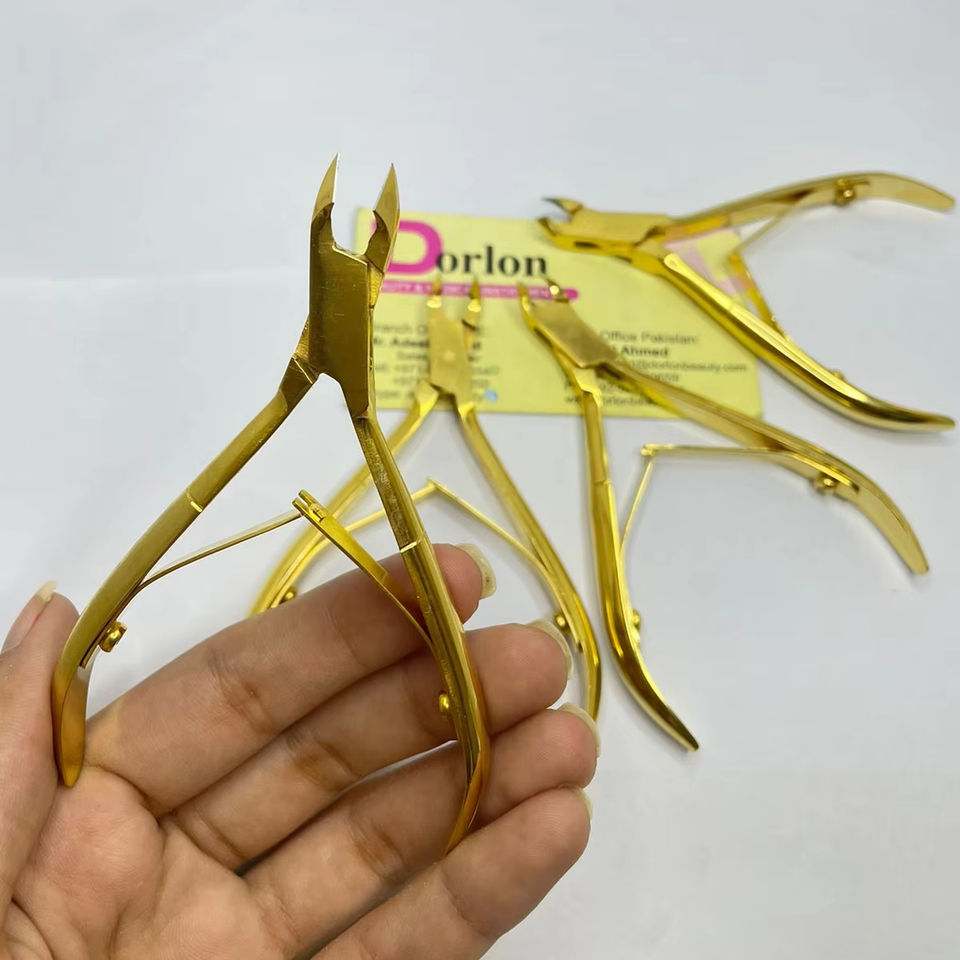 Pince à ongles en acier inoxydable plaqué or de qualité supérieure coupe-cuticules pointus avec logo personnalisé outil de soin des doigts de qualité durable
