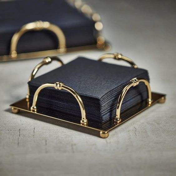 Premium Gold Plated Stainless Steel Freestanding Napkin Dispenser Table Napkin Holder for Kitchen Metal Tissue Boxes