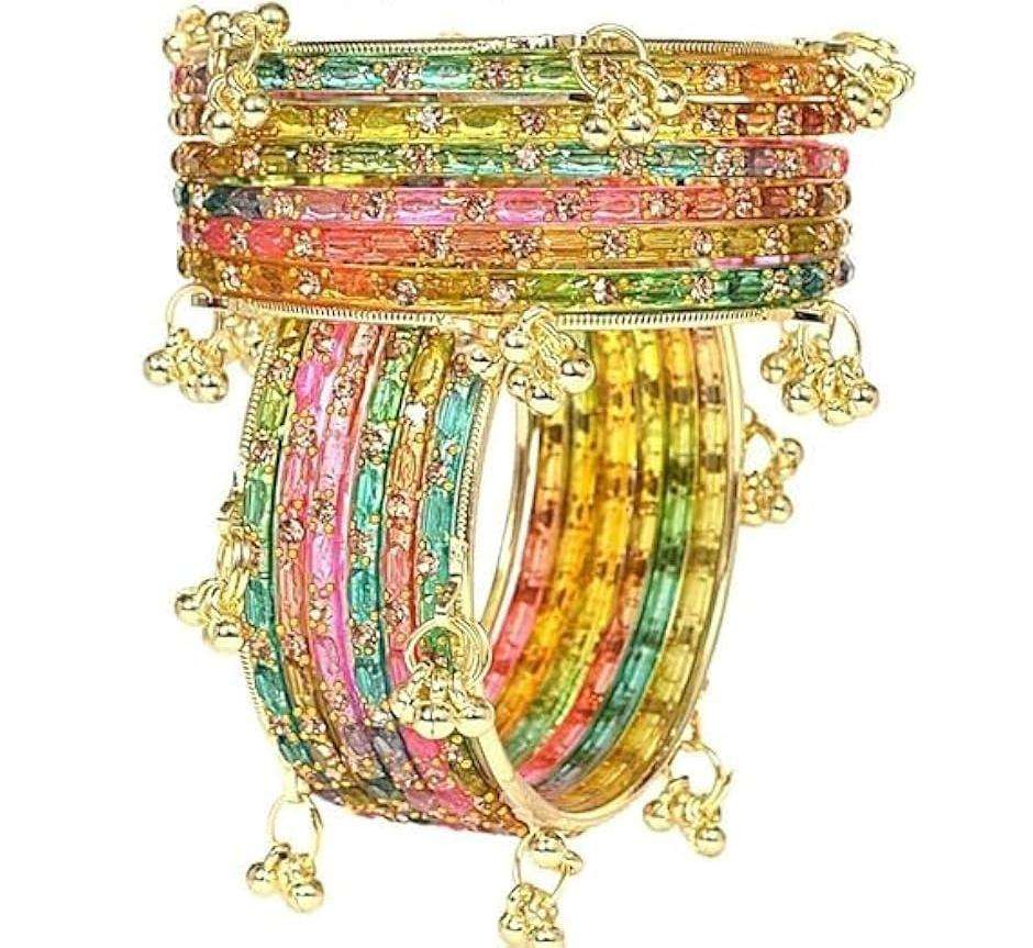 Ensemble de bracelets cachemiri tendance plaqué or de qualité supérieure, en verre et perles multicolores, finition ombrée avec accents scintillants, pour mariage traditionnel