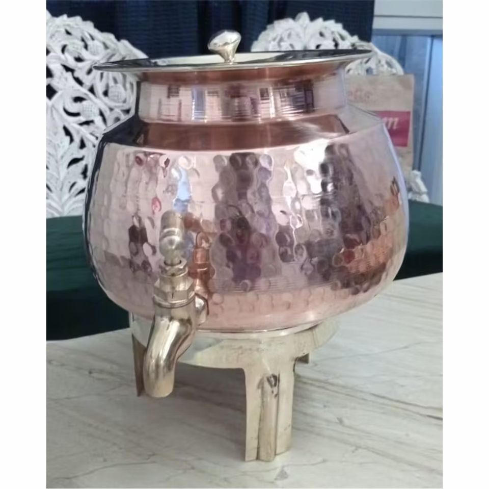 Ensemble de distributeur d'eau en cuivre martelé de qualité supérieure, réservoir en cuivre pur avec robinet en laiton et 2 verres, stockage d'eau ayurvédique traditionnel