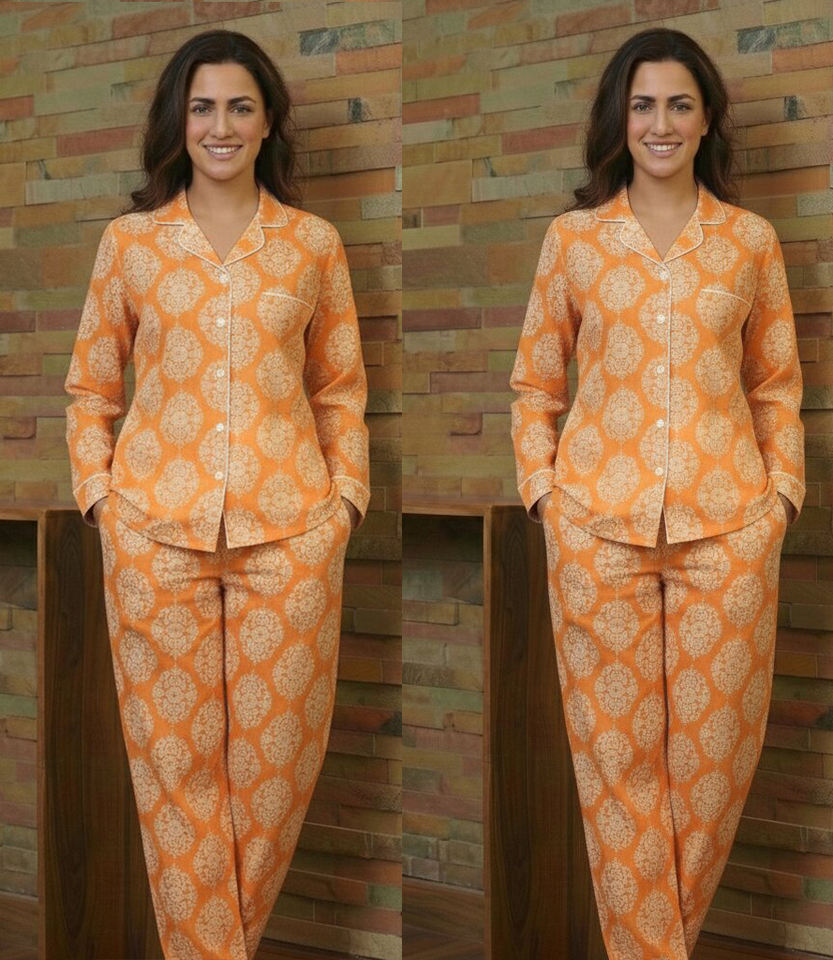 Pyjama pour femme en coton tissé thermique de qualité supérieure, imprimé à la main, doux et respirant, pour le printemps, l'été, l'automne et l'hiver