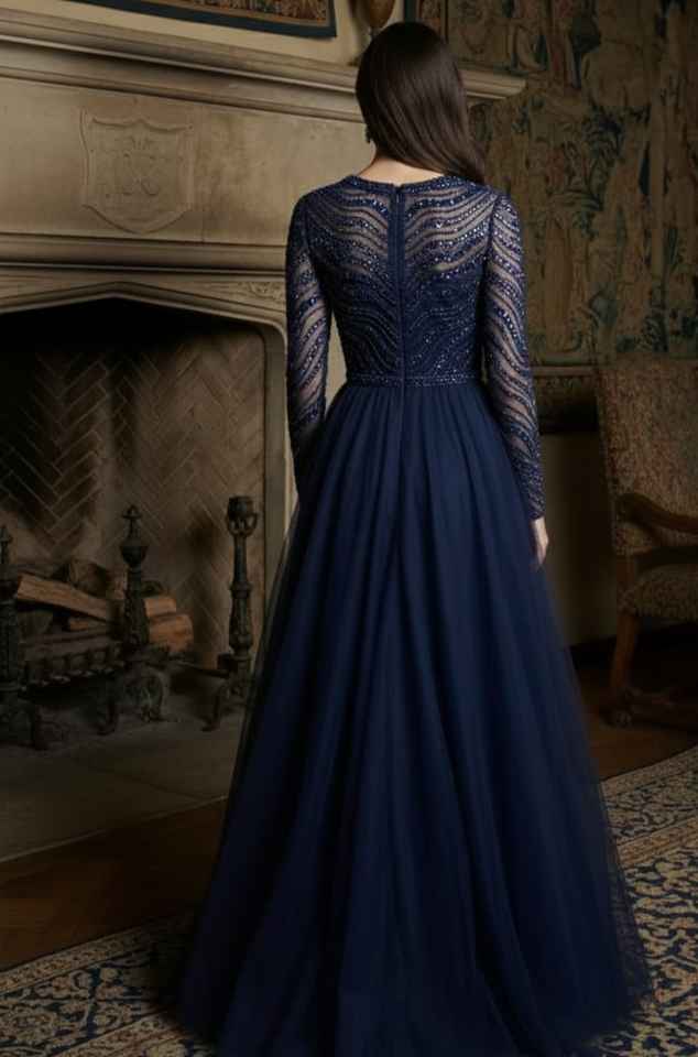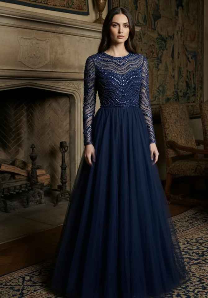Tissu en maille brodé à la main de qualité supérieure avec sequins pour robe de soirée, matériau de robe bleu marine de luxe, vente en gros