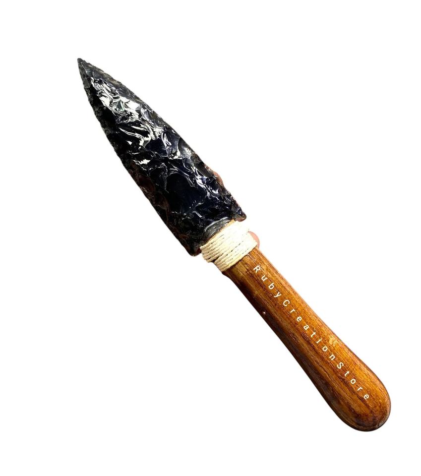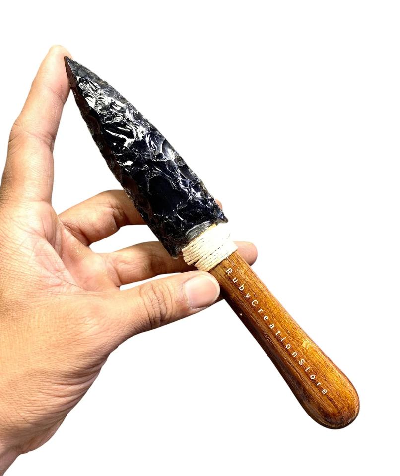 Pointe de flèche en obsidienne noire taillée à la main de qualité supérieure, 8 pouces, grande pierre précieuse, pointe de lance en cristal pour la décoration et l'énergie de guérison