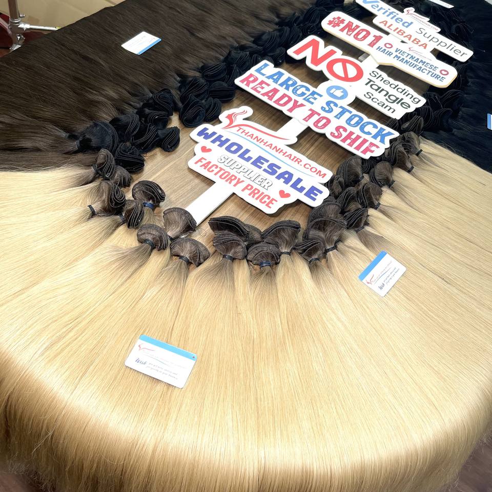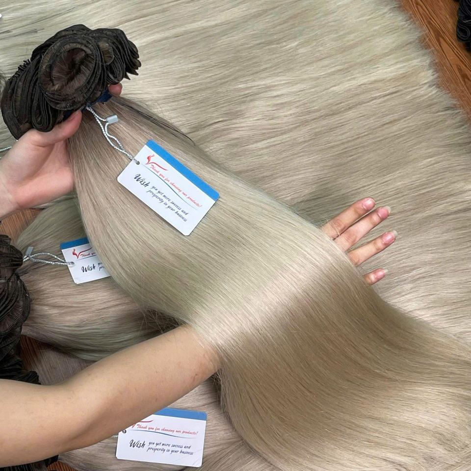 Extensions de cheveux tissées à la main de qualité supérieure, cheveux humains Remy vietnamiens lisses, double épaisseur, plusieurs couleurs