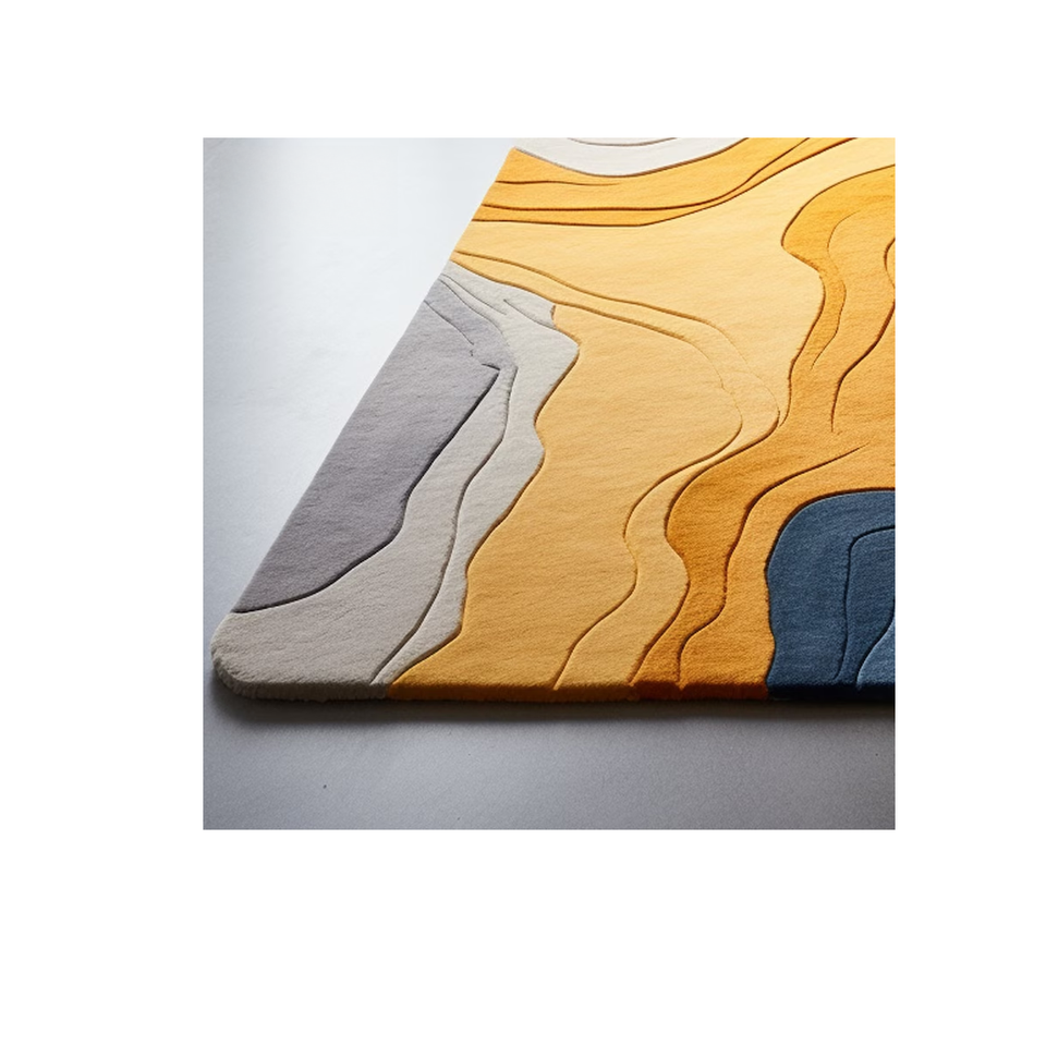 Tapis en laine tufté à la main de qualité supérieure Design abstrait rivière jaune dans un style moderne forme rectangulaire à poils hauts pour un usage domestique