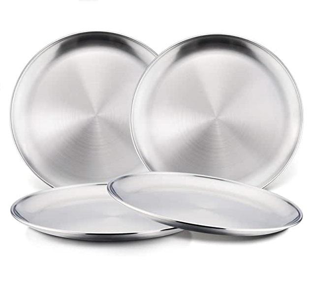 Ensemble de 4 sous-plaques polies argentées en acier inoxydable et métal de qualité supérieure, fabriquées à la main, avec des matériaux et une qualité irréprochables.