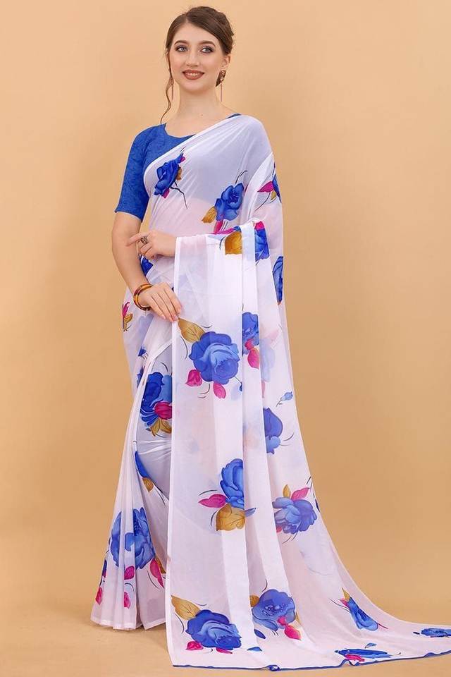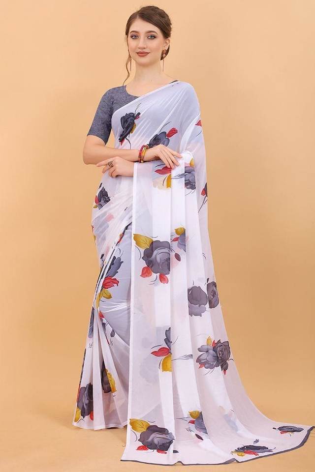 Work:pure Georgette with Crochet 2mm Sequence Work With Digital Print