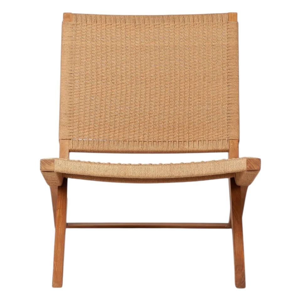 Fauteuil de relaxation Lawit artisanal haut de gamme, construction en teck de qualité supérieure, tressage en rotin écologique, fauteuil lounge à profil bas
