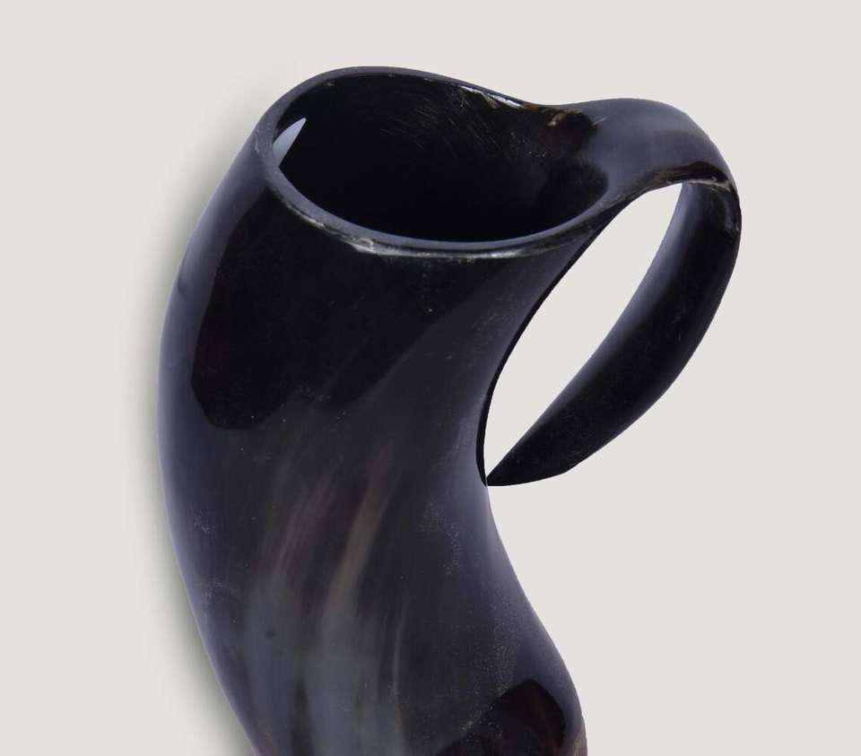 Premium Handcrafted Polished Black Viking Drinking Horn Mug With Solid Wooden Base Authentic Buffalo Horn Beer Tankard Medieval
