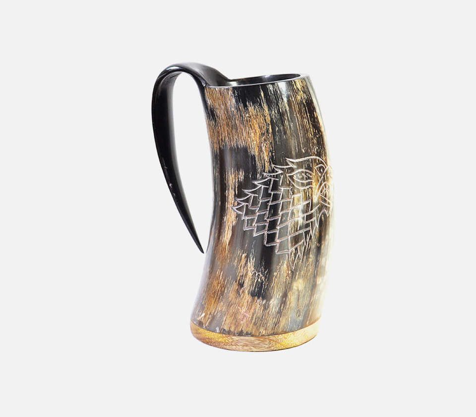 Premium Handcrafted Viking Drinking Horn Mug With Authentic Wolf Head Engraving Natural Grain Buffalo Horn Tankard For Beer