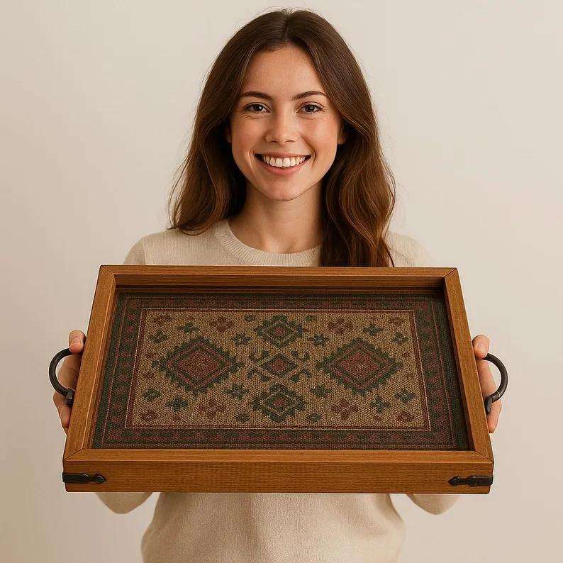 Premium Handcrafted luxury wooden Serving tray with Meena at reasonable price