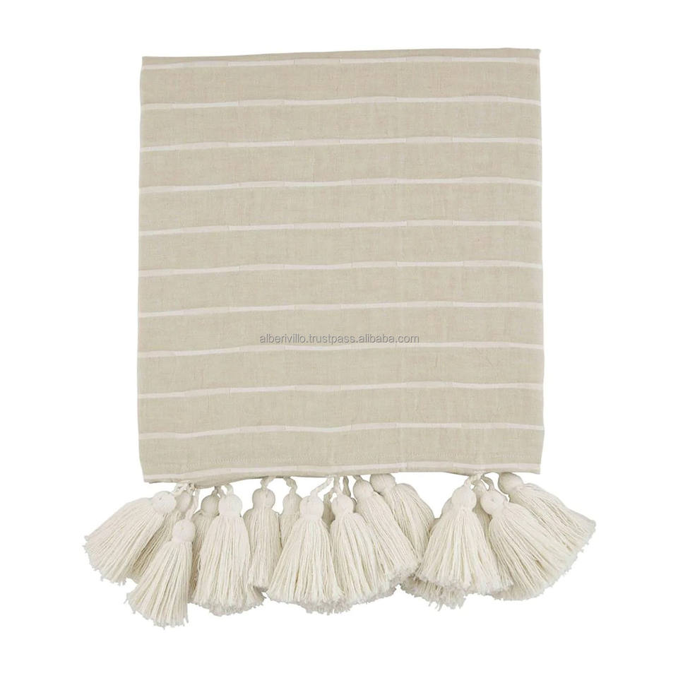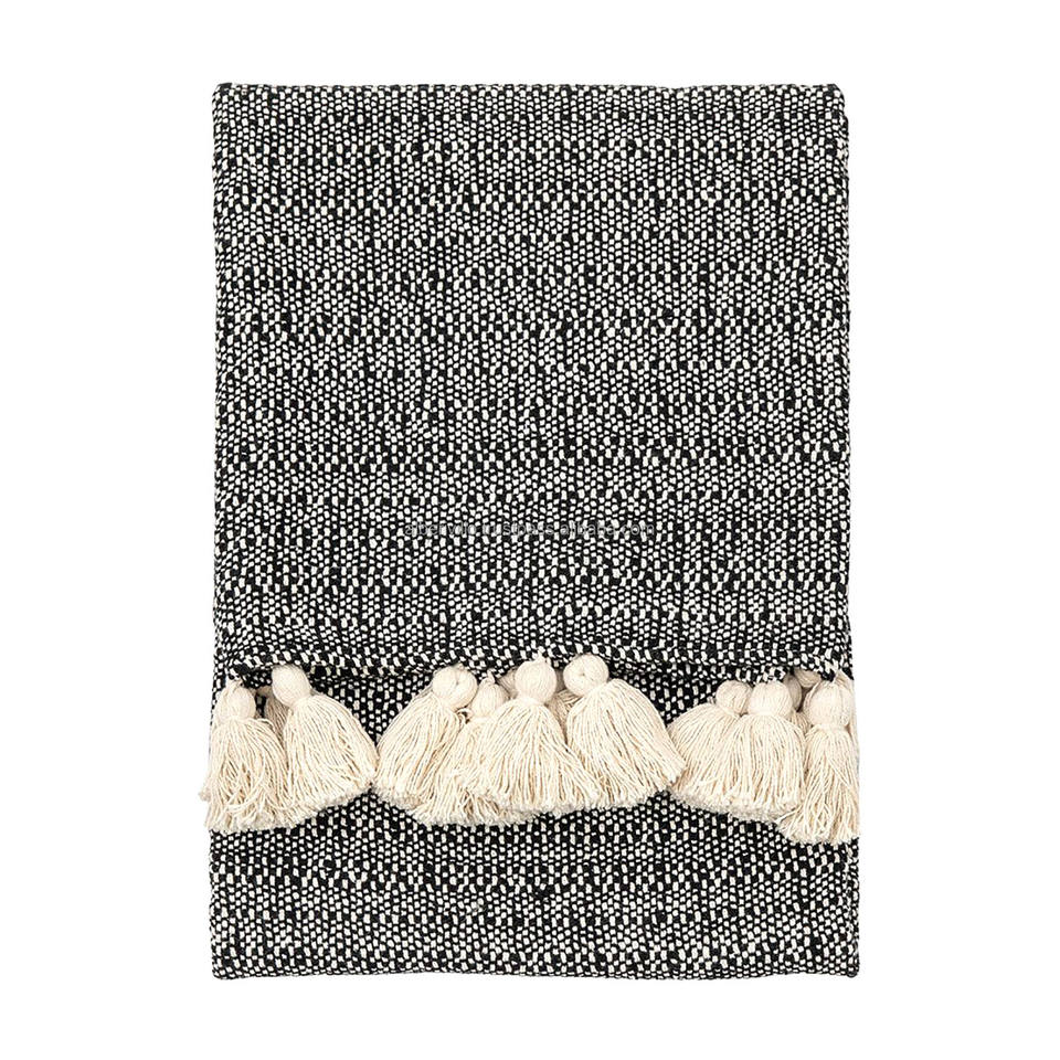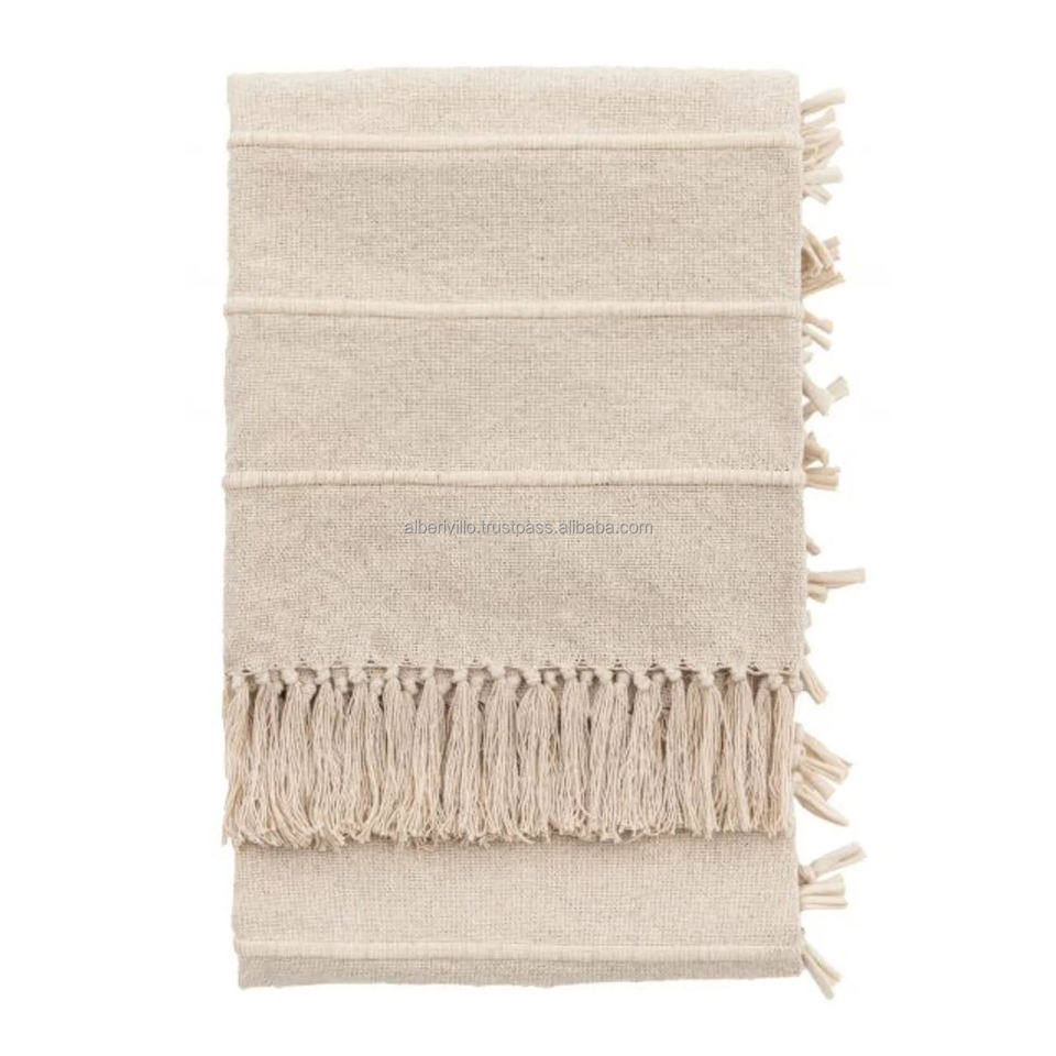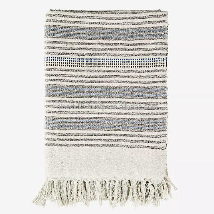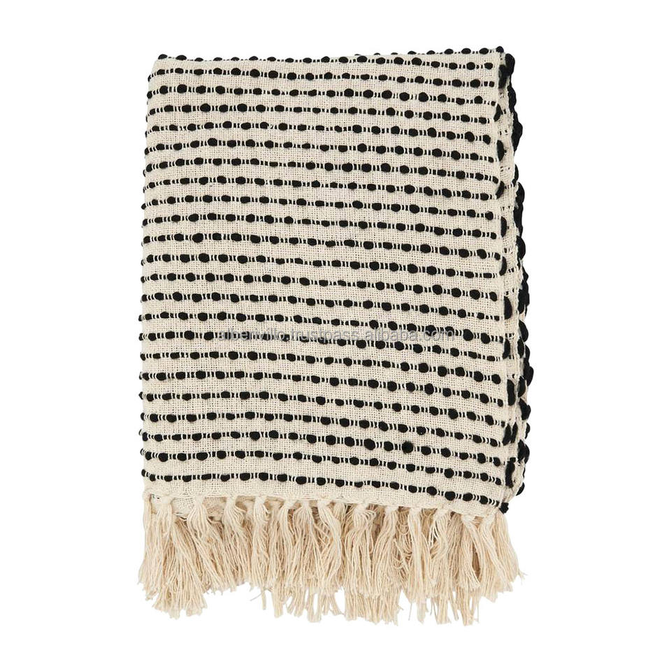 Jeté de lit en coton Handloom de qualité supérieure avec tissage à rayures noires et frange à pampilles pour les acheteurs mondiaux de décoration en gros