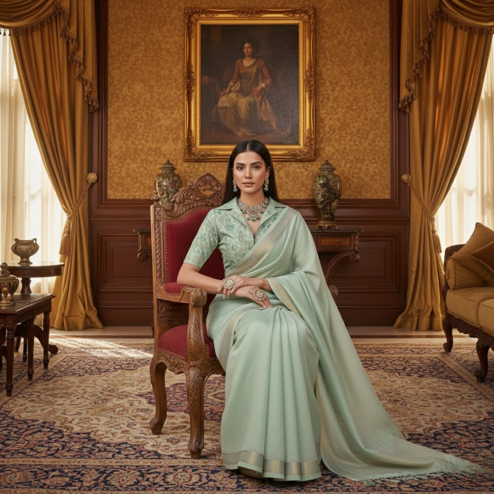 Sari en tissu Zari tissé à la main de qualité supérieure avec un chemisier en brocart lourd | Collection ethnique élégante de vêtements de soirée de créateurs à prix de gros