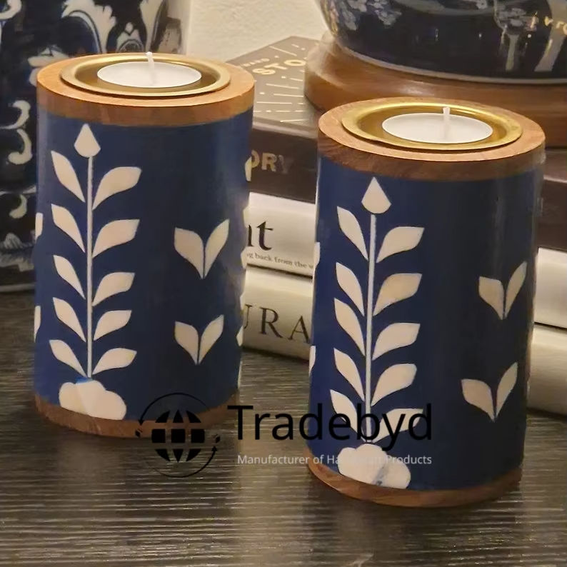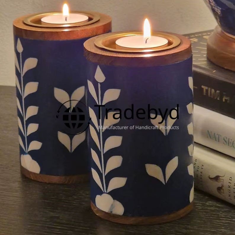 Porte-bougie en os incrusté fait main de qualité supérieure, décoration de table pour la maison par Tradebyd