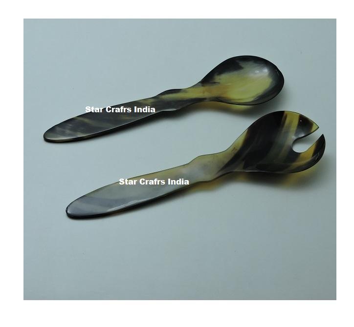Premium Handmade Horn Soup Ladle & Cow Horn Salad Tongs and Flatware Dining Horn Spoon Set at Affordable Price
