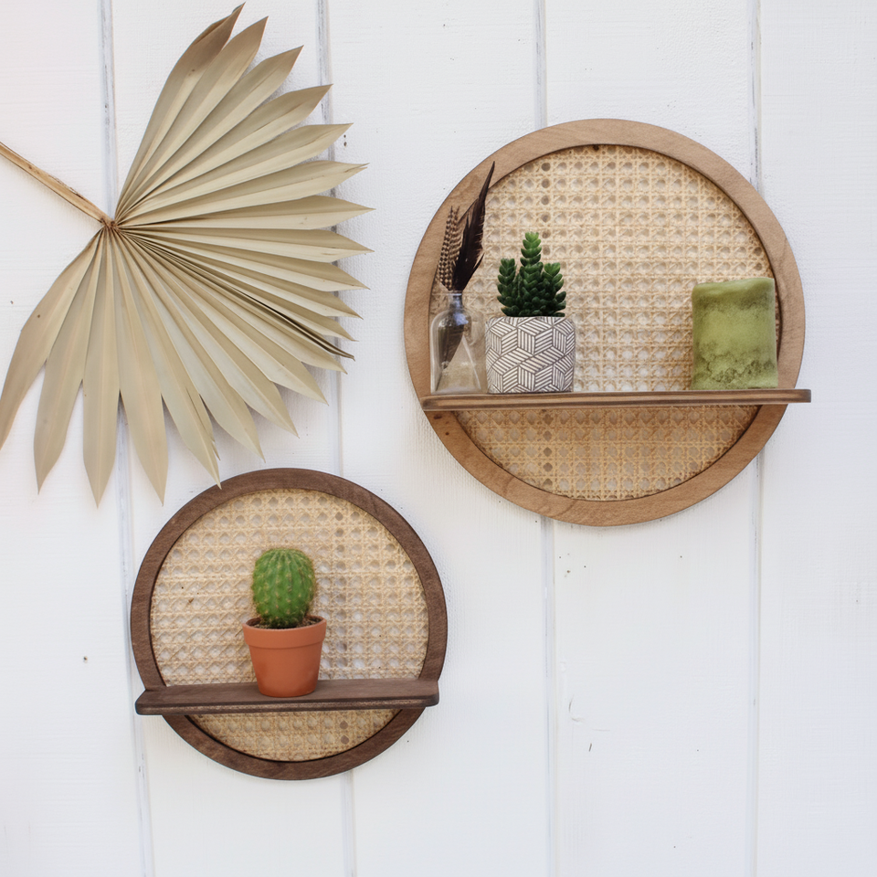 Étagère murale en rotin fait main de qualité supérieure avec finition brillante, parfaite pour les maisons élégantes et les appartements modernes