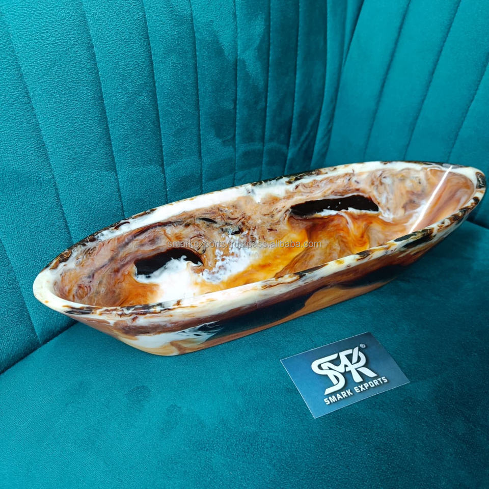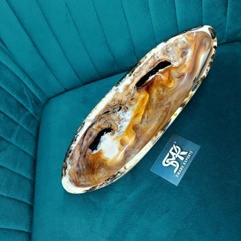 Bol décoratif en résine artisanale de qualité supérieure avec finition marbrée brillante pour centre de table et présentation élégante