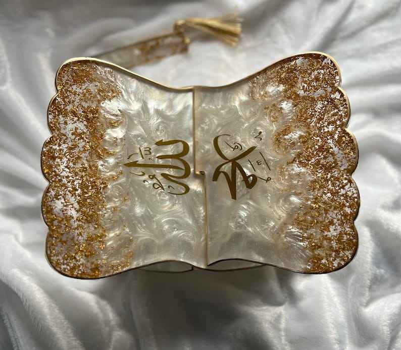 Premium Handmade Resin Epoxy Quran Rahel Stand Luxury Eid Mubarak Islamic Gift Bestseller Design