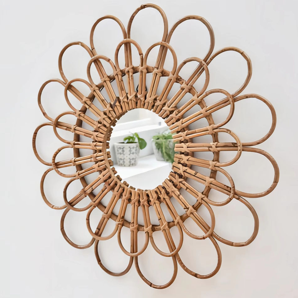Miroir mural rond en rotin fait main de qualité supérieure, parfait pour la décoration de la chambre et de la salle de bain