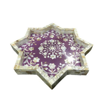 Plateau rond fait à la main de qualité supérieure avec incrustation de résine osseuse et de perles Artisanat élégant pour la cuisine à domicile et l'hôtel