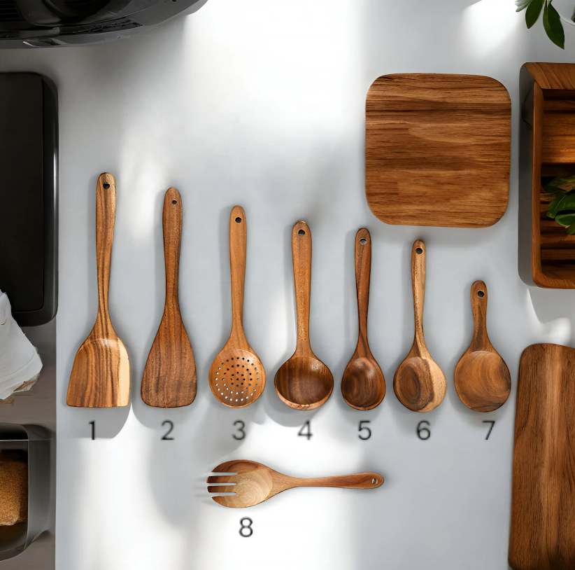 Ensemble de cuillères de service en bois faites à la main de qualité supérieure Expertise artisanale Ustensile de cuisine pour les fêtes en provenance d'Inde