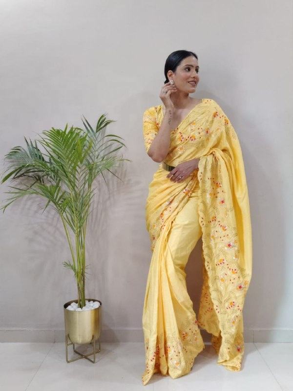 Collection de saris de soirée haut de gamme faits main par des designers, avec broderies lourdes, lavables en machine, et magnifiques bordures en dentelle, style indien et pakistanais.