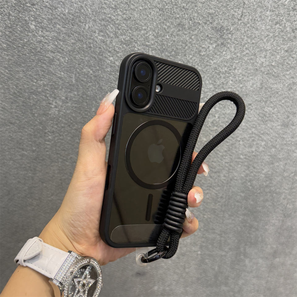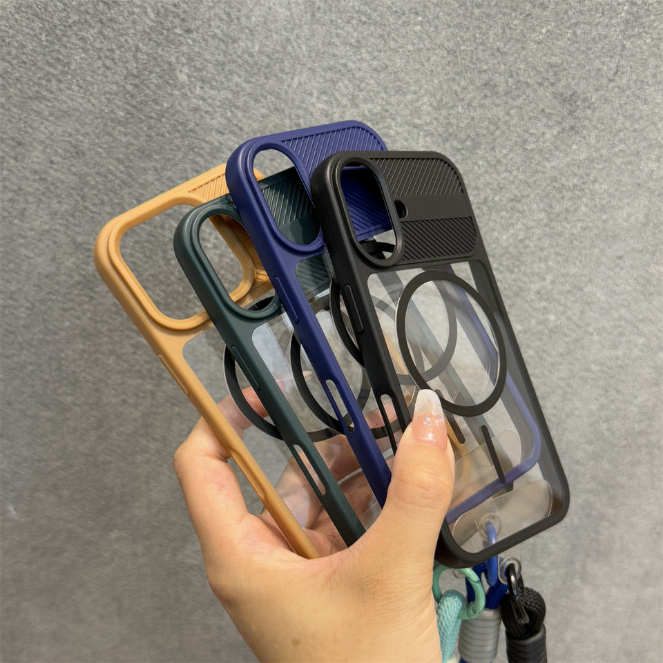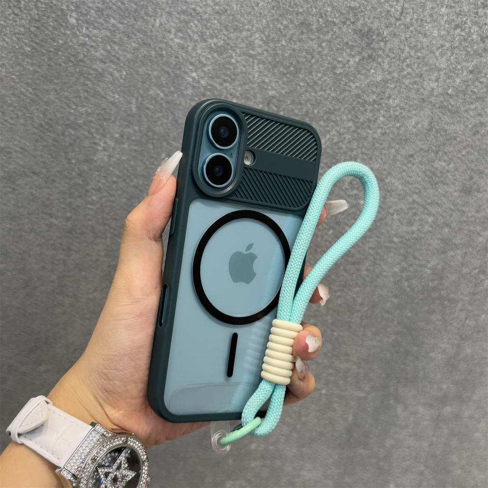 Coque rigide de qualité supérieure pour iPhone 16/16 Pro 15 Pro Max Anneau fin vert Aspiration magnétique Acrylique transparent Grande fenêtre souple
