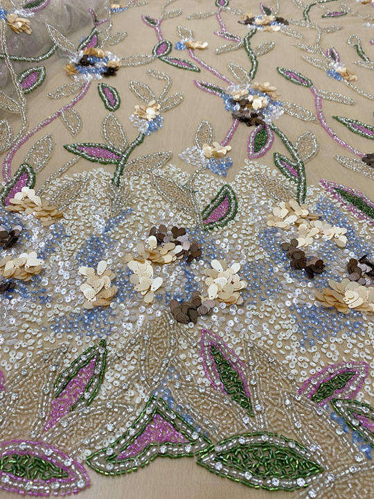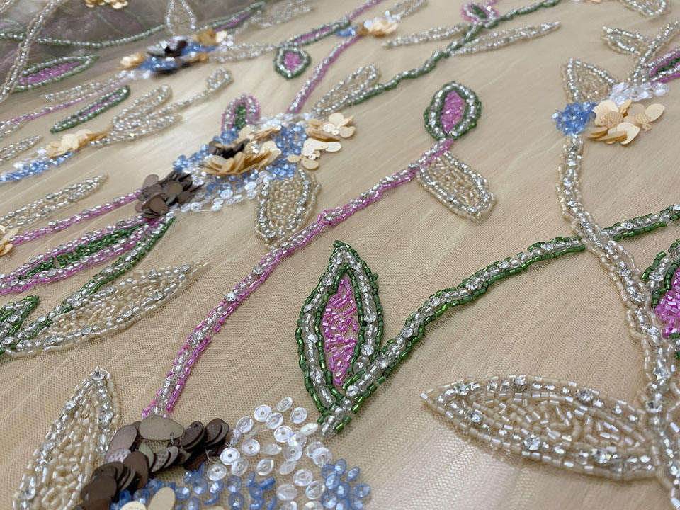 Hand Beaded Lace Fabric
