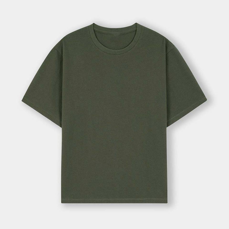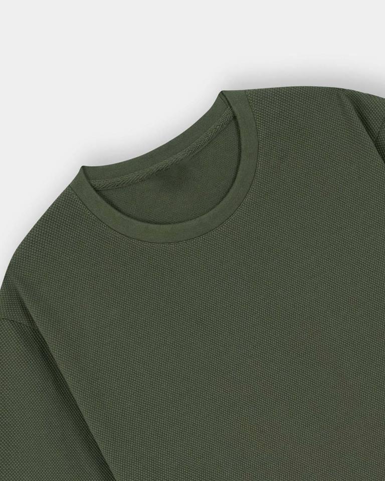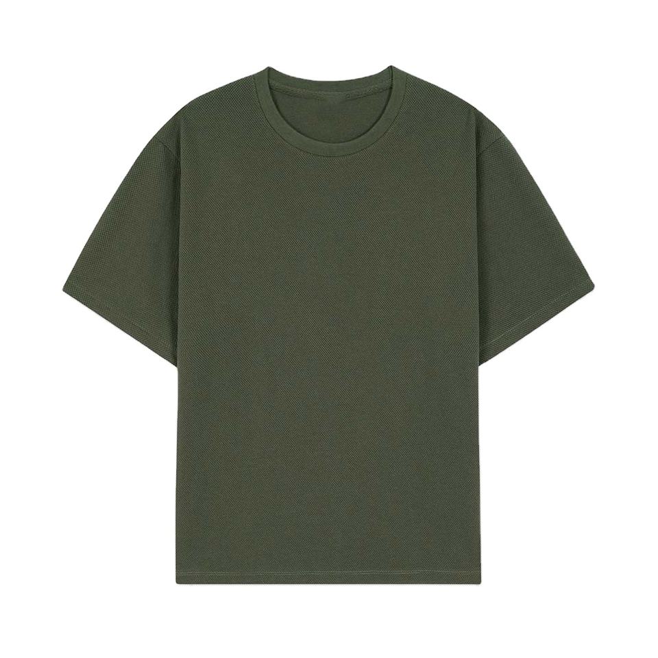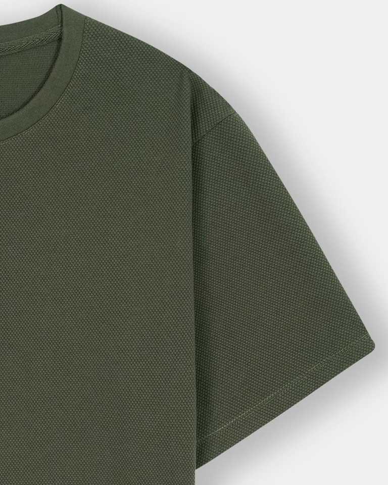 T-shirt Homme Vert Olive Oversize à Épaules Tombantes en Coton Texturé Gaufré Premium 100% Coton avec Tissu Maille Personnalisé Séchage Rapide