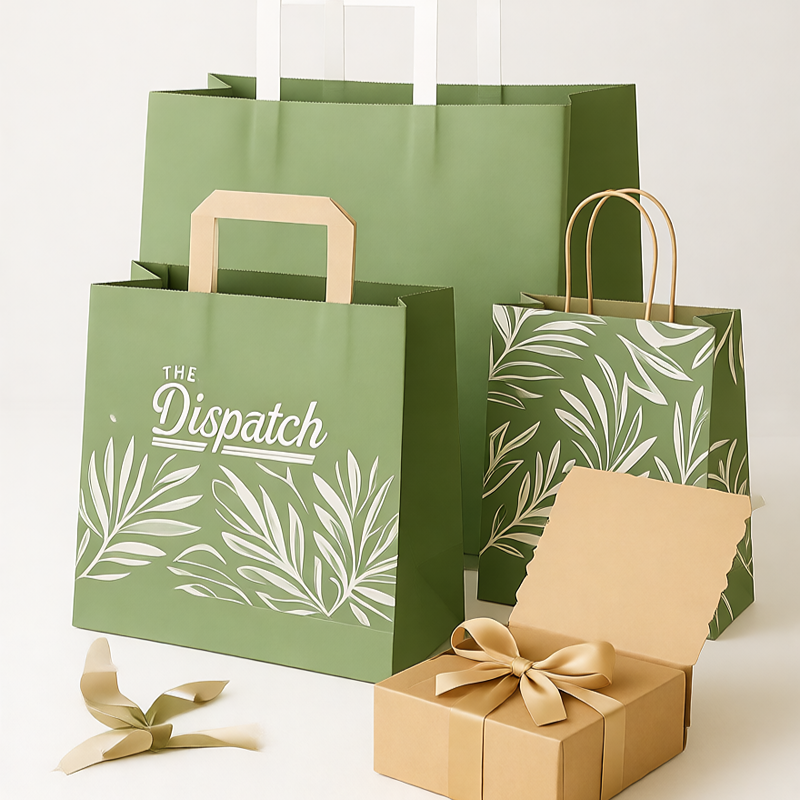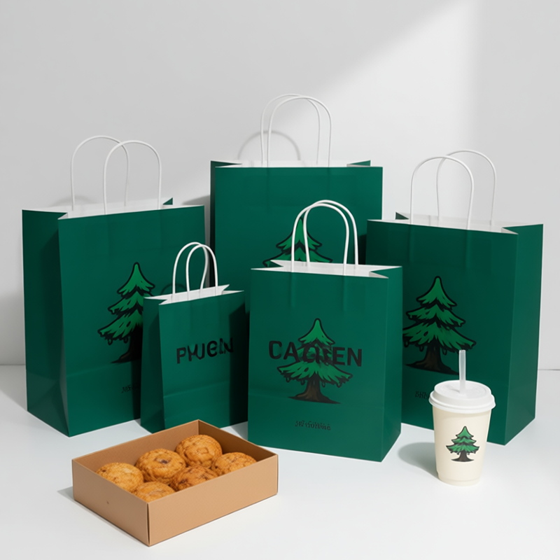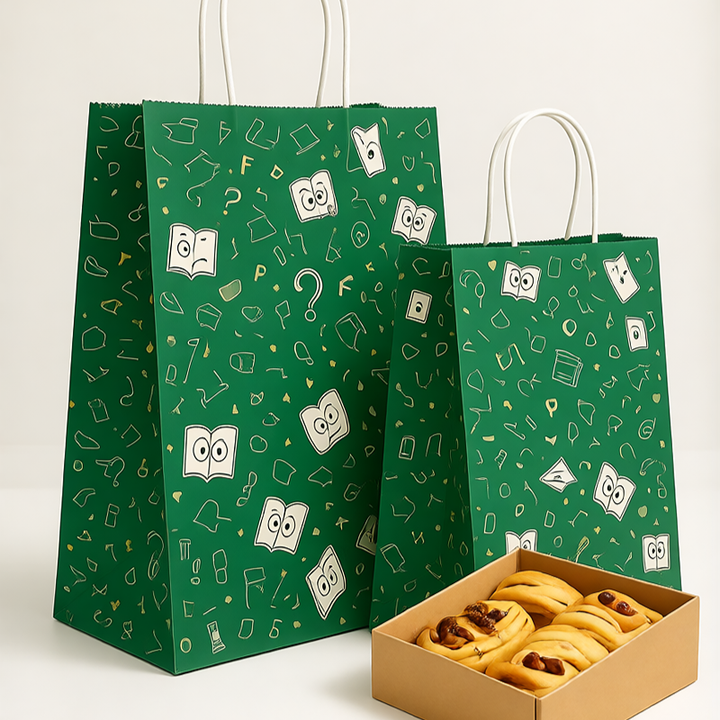Sacs en papier kraft premium pour pain long, salades et boulangerie artisanale – Emballage vert foncé de luxe écologique pour cadeaux gourmands