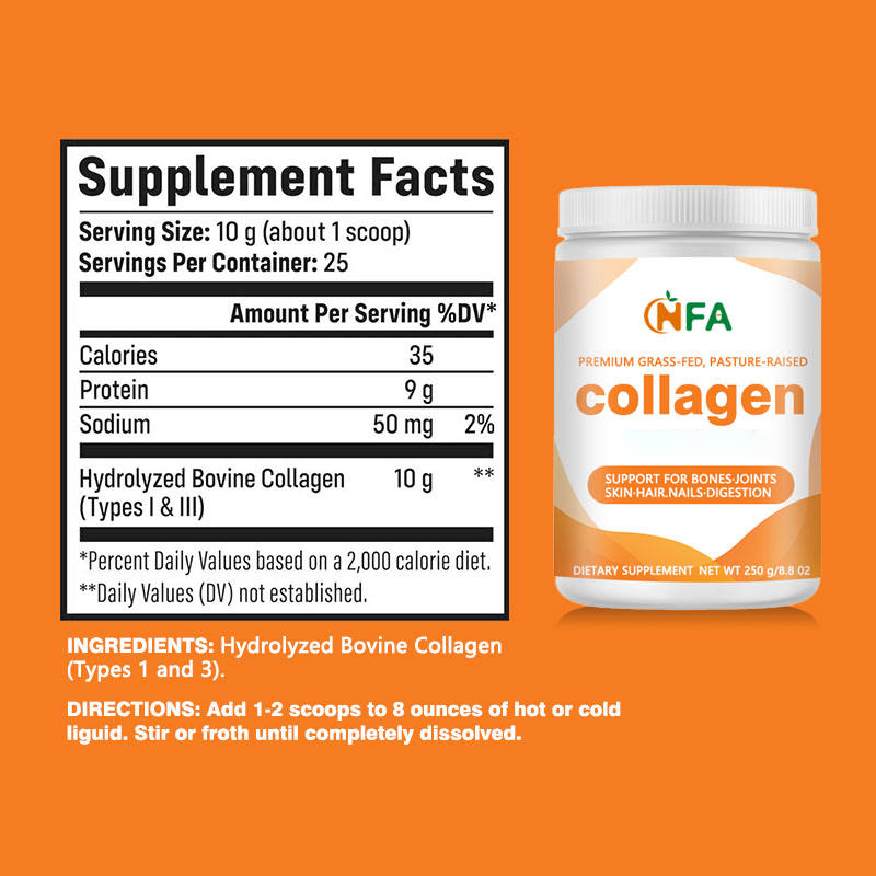Poudre de collagène premium avec collagène bovin hydrolysé au sodium pour soutenir la santé de la peau et favoriser la force osseuse