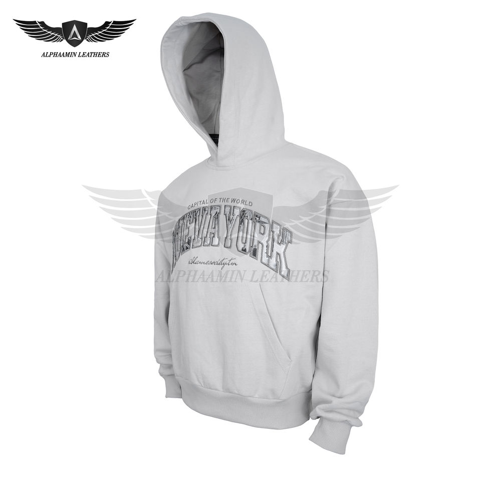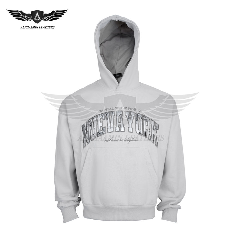 Sweat à capuche oversize en coton français de qualité supérieure, broderie 3D personnalisée, imprimé streetwear, 100% coton, blanc, unisexe