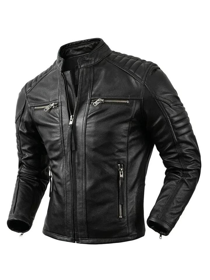 Veste en cuir d'agneau véritable vintage de haute qualité avec logo personnalisé fermeture éclair rouge Pu Biker pour hommes