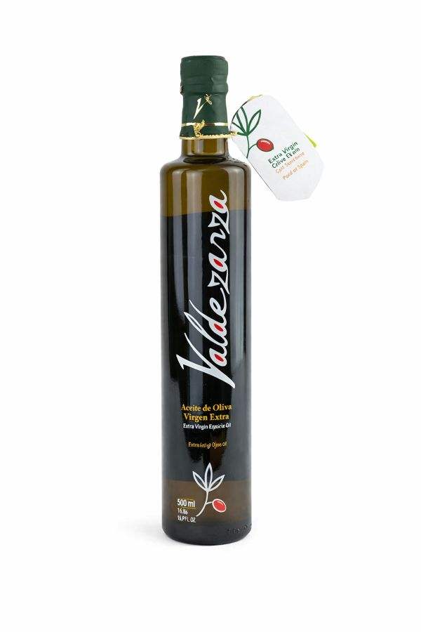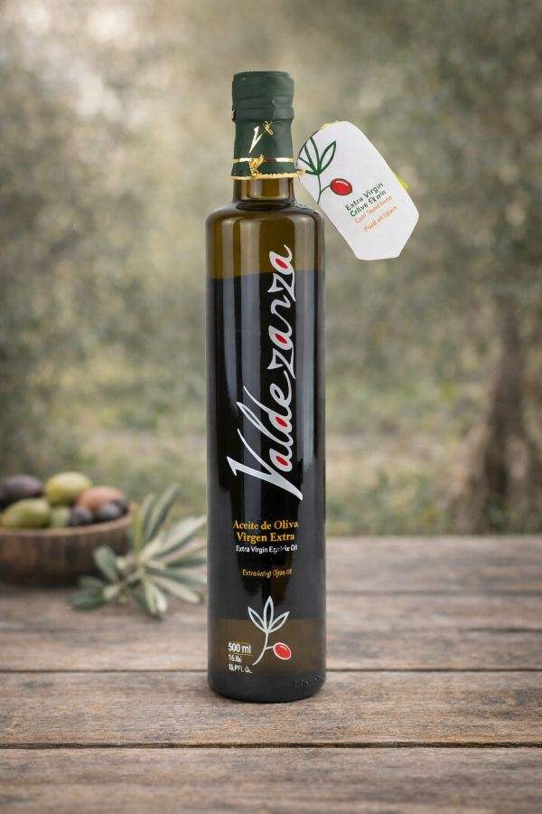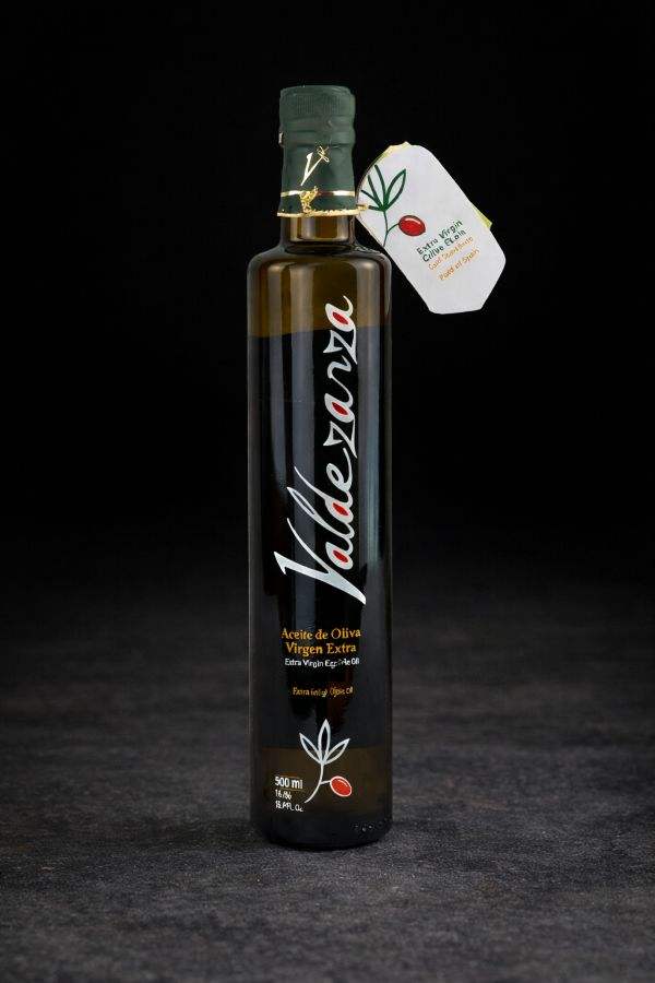 Huile d'olive extra vierge biologique de première qualité pressée à froid 100% Valdezarza 500 ml Bouteille en verre dorique foncé Vinaigrette