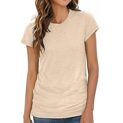 T-shirt femme slim fit à manches courtes et col rond, en polyester et coton, de haute qualité, prêt à être expédié.