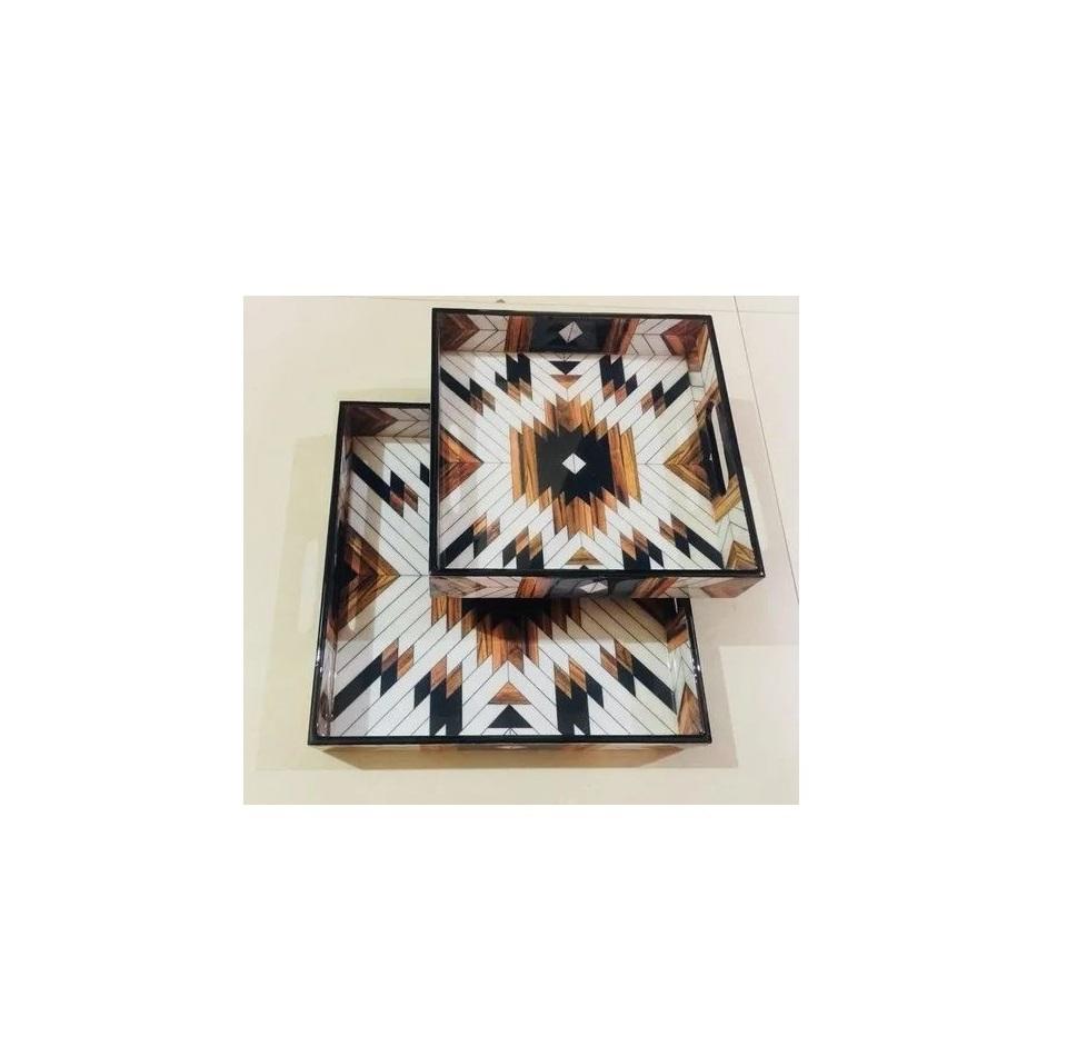 Plateau imprimé en bois de conception de qualité supérieure de haute qualité pour la maison cuisine Fruits vaisselle de table plateau de service à vendre le plus récent plateau imprimé