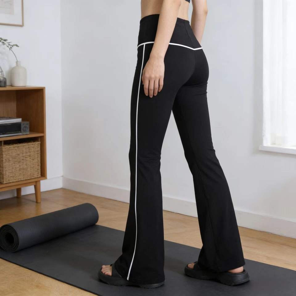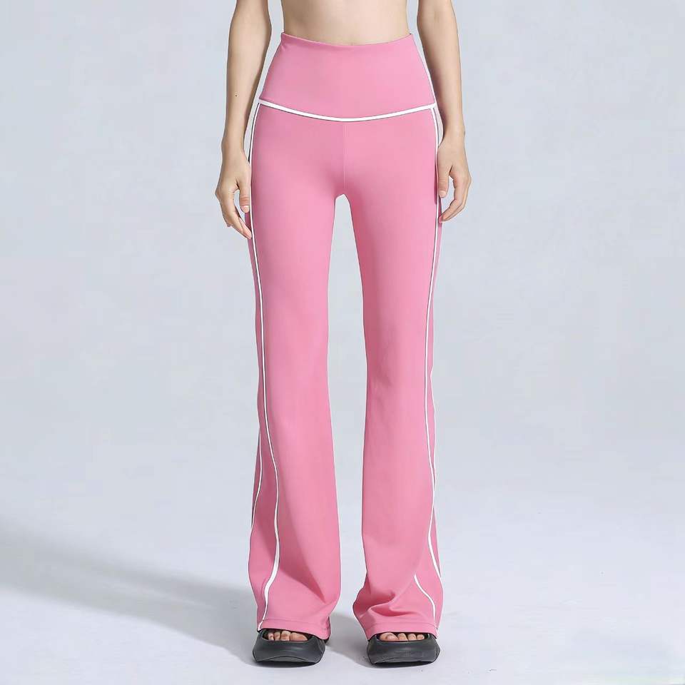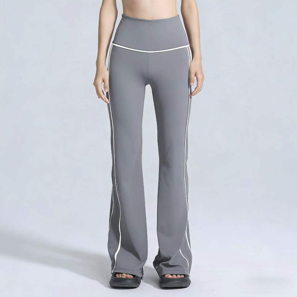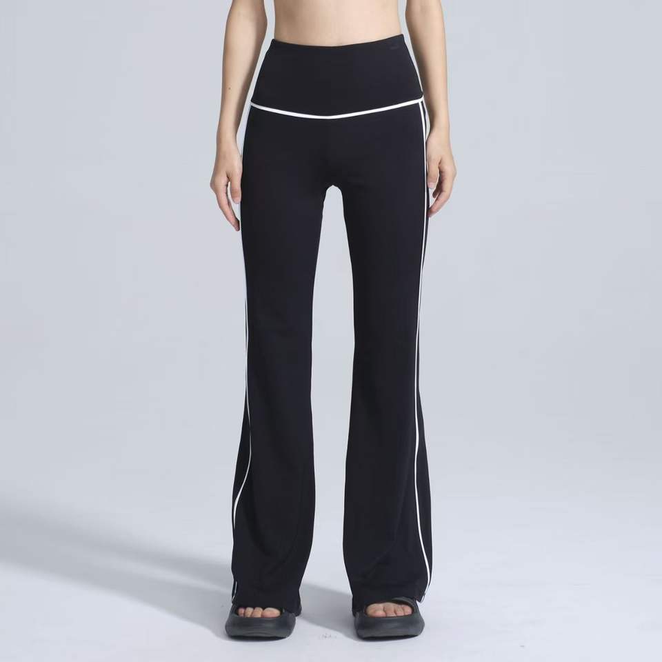 Pantalon de yoga évasé taille haute premium avec passepoil contrastant, respirant, idéal pour le yoga, le Pilates, le fitness, les tenues décontractées et le quotidien