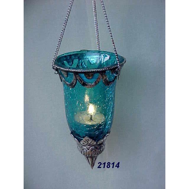 Accessoires pour la maison Premium Verre bleu et laiton argenté Photophore suspendu