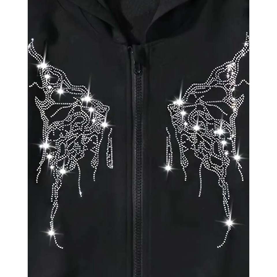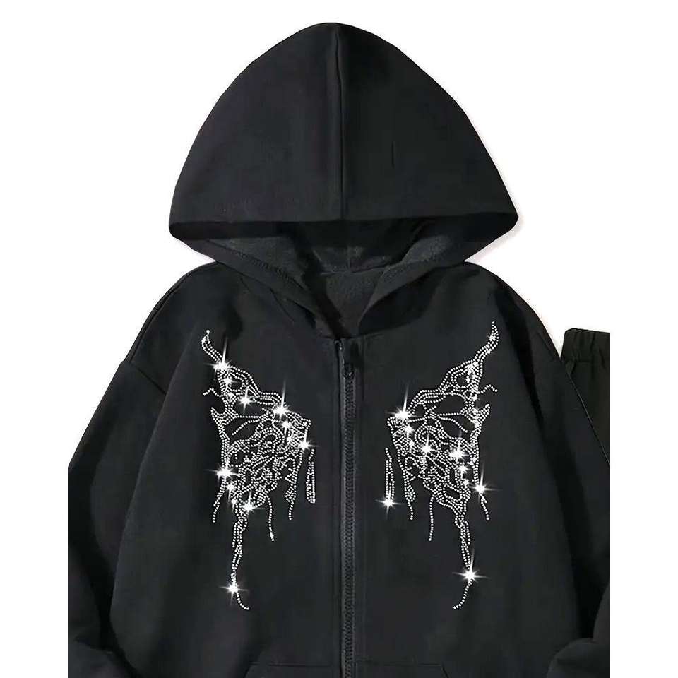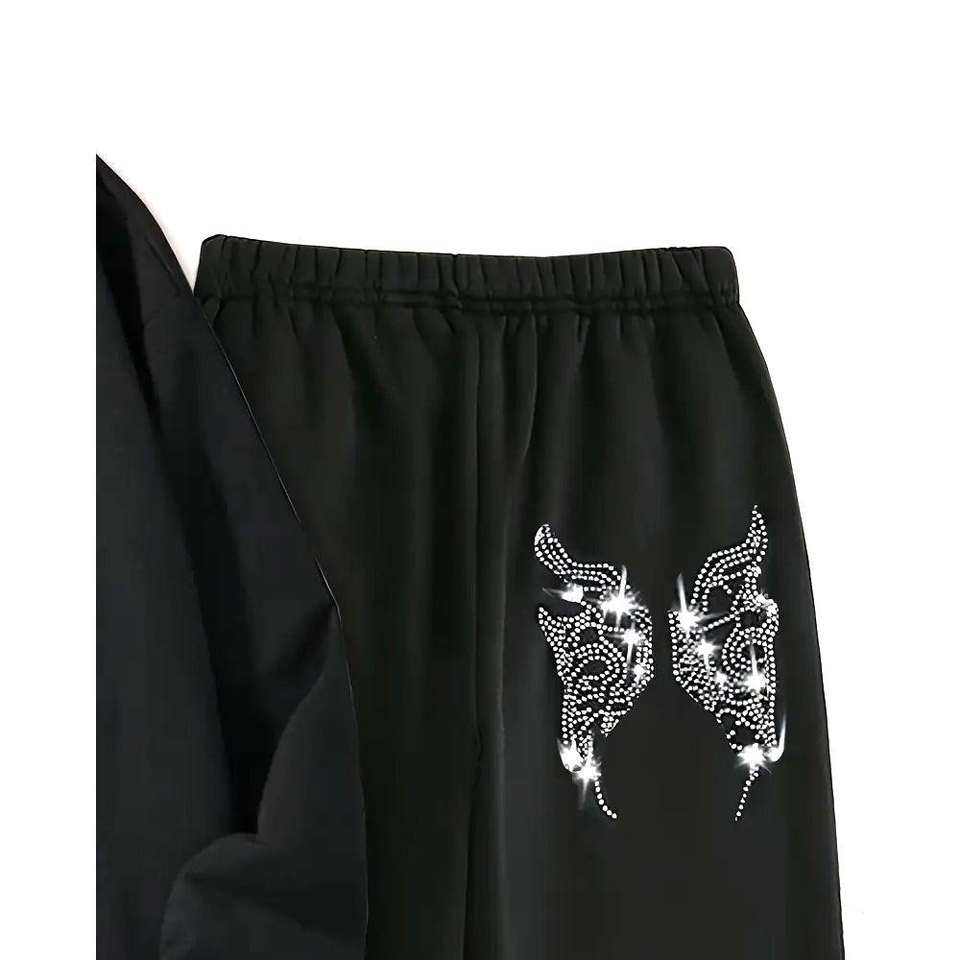Survêtement Homme Premium Tendance avec Strass, Effet Délavé, Hoodie Oversize et Pantalon de Survêtement Imprimé, Fermeture Éclair, Personnalisable, Décontracté, pour l'Extérieur